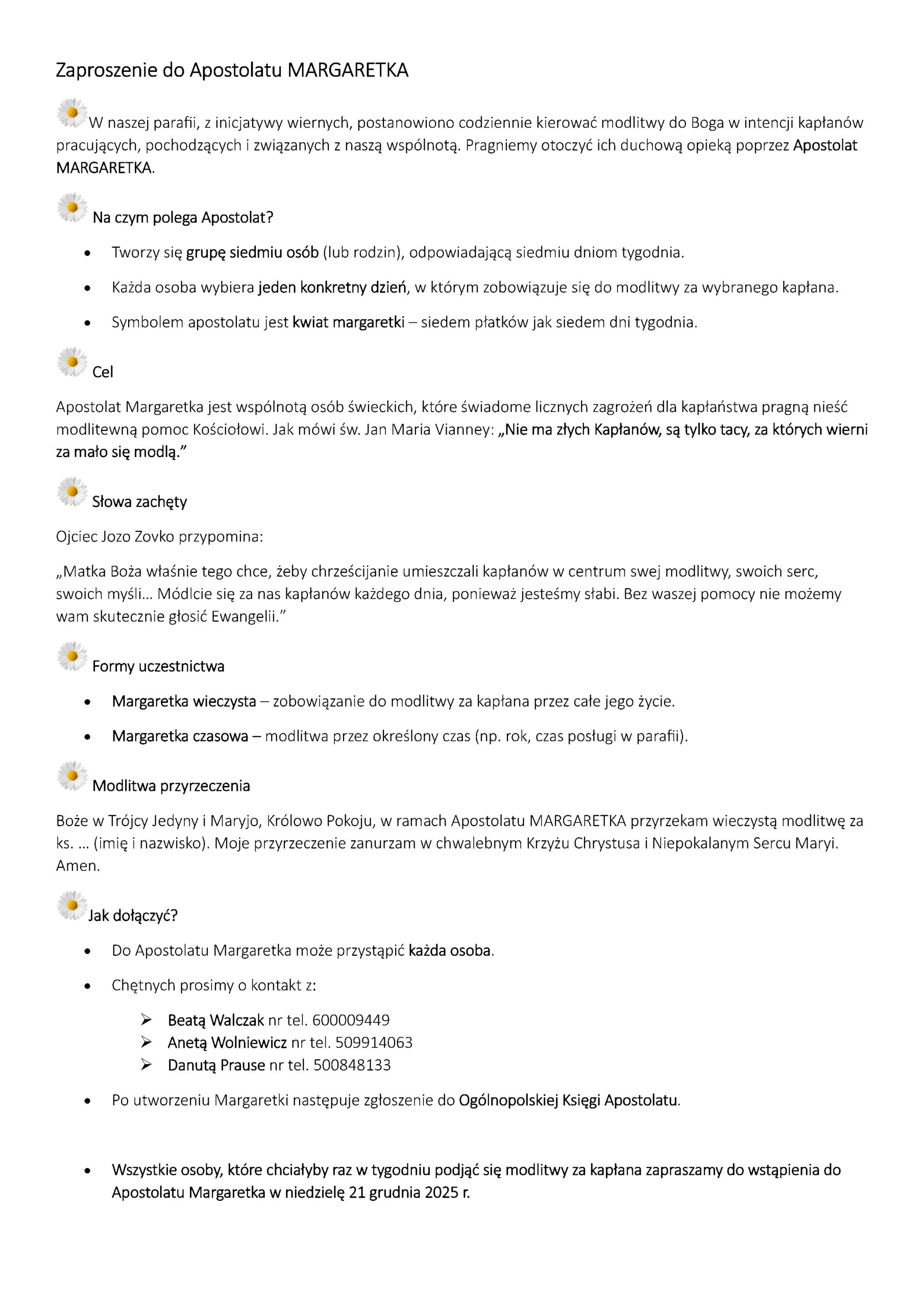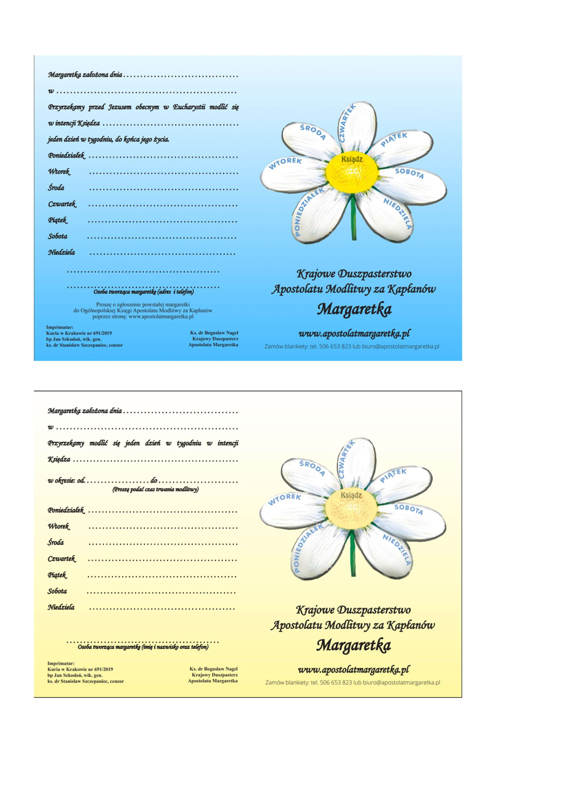 > blankiet żółty – margaretka czasowa, w której osoby deklarują konkretny okres modlitwy (wzór także tutaj).